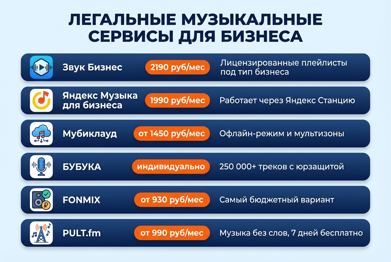 💡 Совет: Если вы включаете музыку для клиентов — через колонку, радио, Алису или любой стриминг — прочитайте эту статью до конца. Один визит проверяющего может обойтись в 200–500 тысяч рублей.