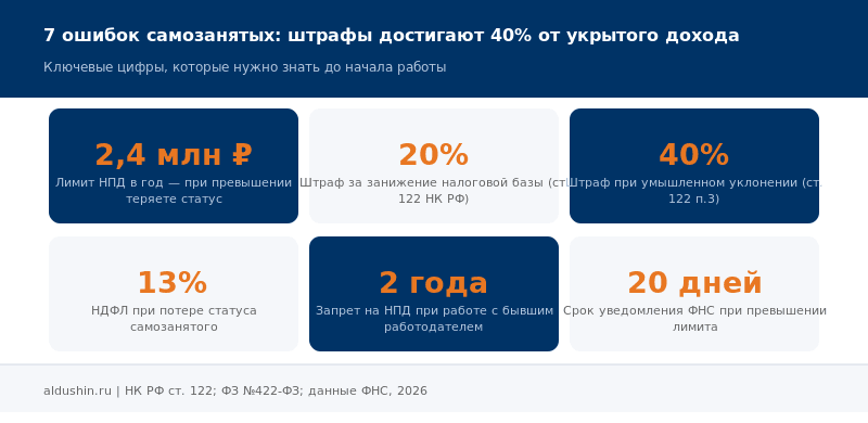 7 критических ошибок самозанятых и ИП в 2026: работа без чеков, карты родственников, лже-самозанятые. Штрафы, санкции и как исправить ситуацию.